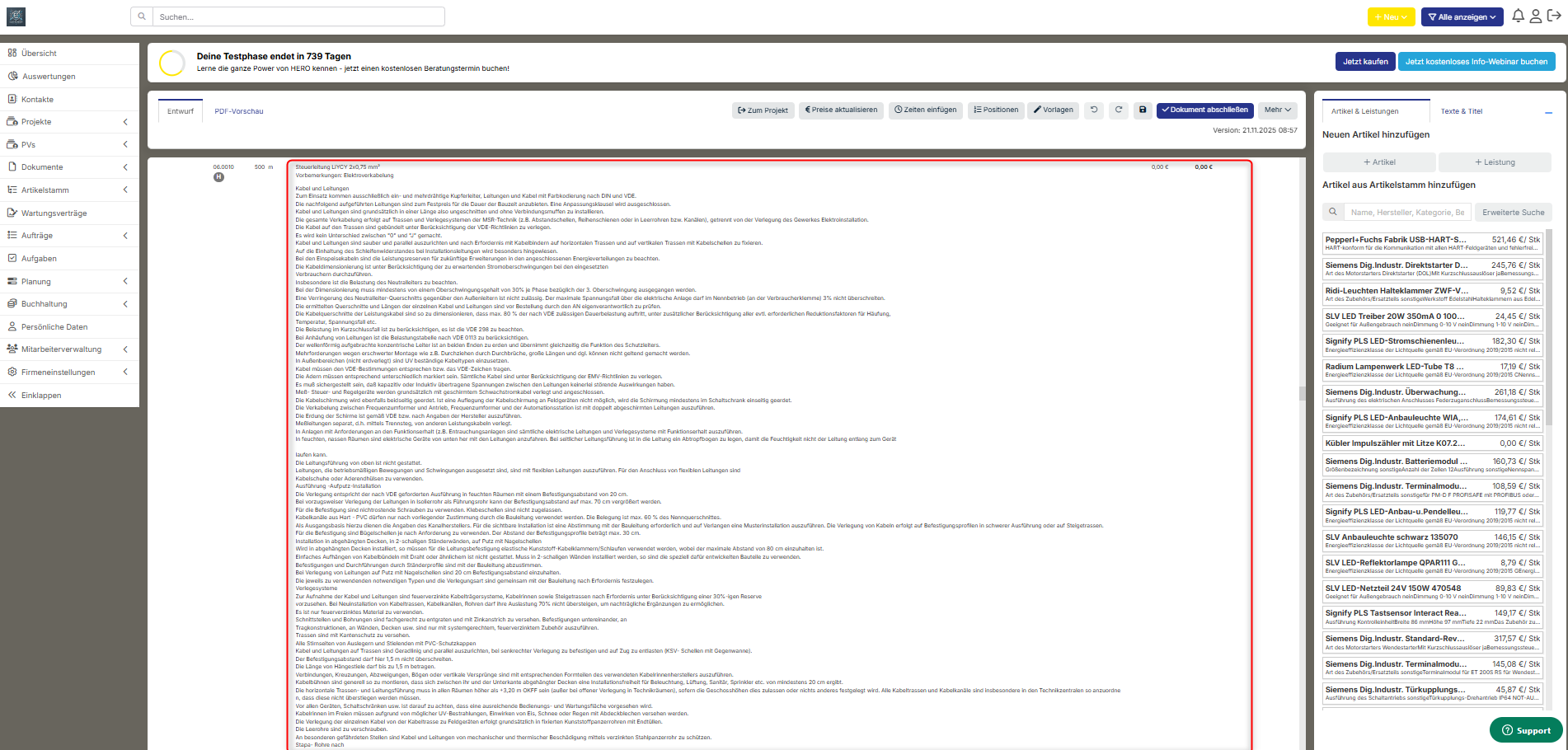 Wir haben den Dokumenten-Editor von Sonepar-HERO verbessert, damit Sie jetzt auch Angebote auf der Grundlage von GAEB-Dateien erstellen können. Das bedeutet, dass Sie jetzt GAEB-Dateien importieren und damit Ihre Kalkulationen durchführen können.