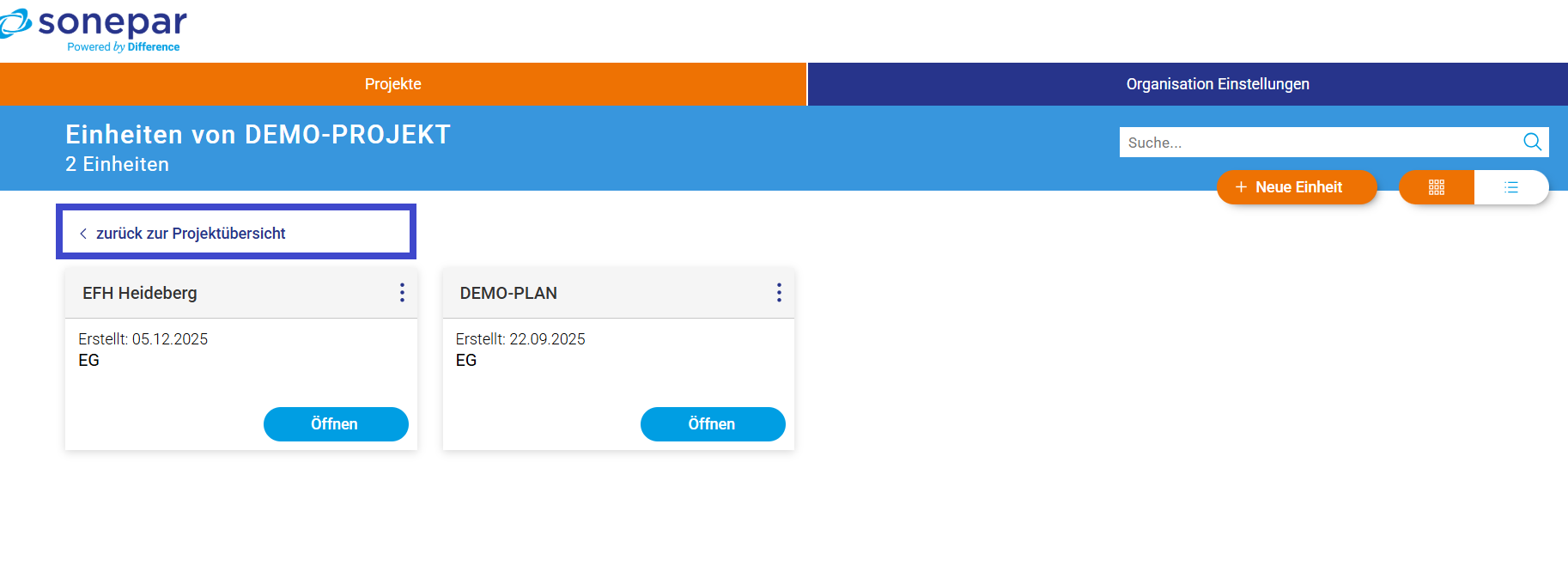 Neuer Button „Zurück zur Projektübersicht“
