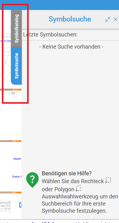 Symbolkatalog wurde in diesem Bereich platziert und als Drawer dargestellt.