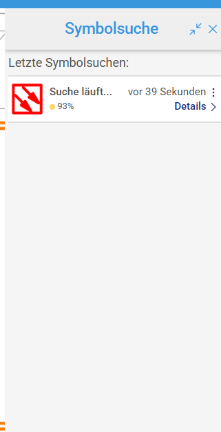 Die Symbolsuche ist jetzt mit einem KI-Icon (Stern) gekennzeichnet. Die Suche funktioniert wie bisher – nur die Kachel mit den Ergebnissen wurde angepasst.